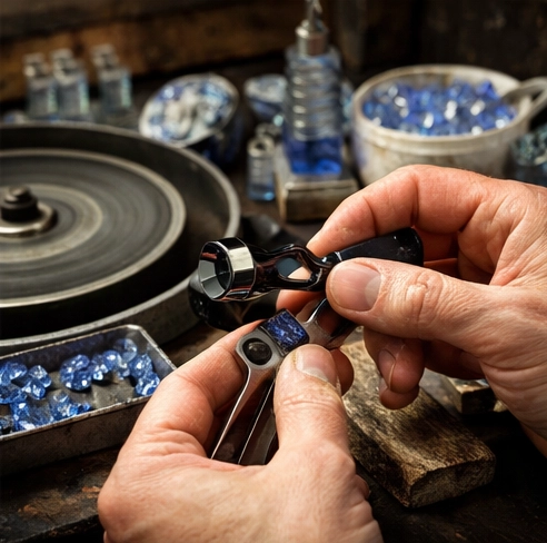 Afterward, the extracted Benitoite stone undergoes precision faceting done by cutters.