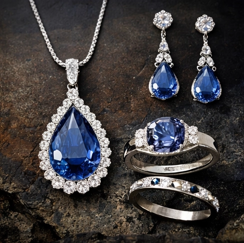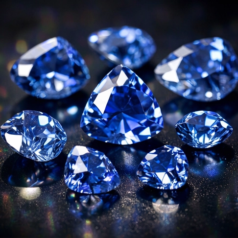 The gemstone typically appears in a “cornflower” blue.