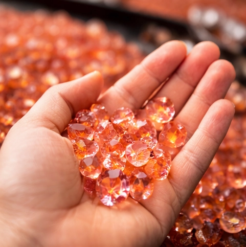 The gemstone reflects a delicate balance of orange and pink hues02.